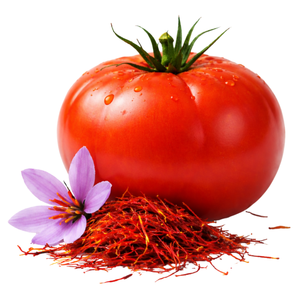 El azafrán —la especia más valiosa— producido en tomate, a escala agrícola. Hasta 10–20× más rendimiento que el azafrán tradicional.